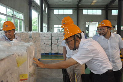 王红一行先后参观了丰乐农化展厅、自动化制剂产品生产线及智能仓库,认真聆听了公司工作人员的介绍,仔细询问了公司在安全环保和生产经营方面存在的困难,并对丰乐农化绿色生态化、数字智能化建设给予高度赞扬。