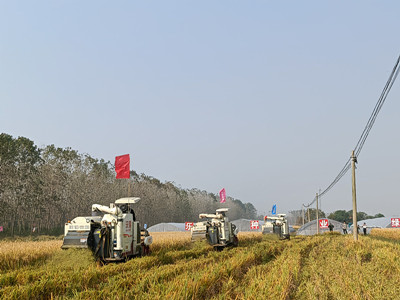 金秋十月,稻浪飘香。10月27日上午,丰乐农化烔炀水稻绿色种植示范区秋粮正式开镰收割,示范区内放眼望去一派金黄,3台大型联合收割机在田间穿梭,割稻、脱粒、秸秆粉碎、装车等工序一次性完成,收割机的轰鸣声此起彼伏,四轮运粮车在田间地头穿梭不停,丰乐农化“党员先锋队”同志们也在现场参加义务劳动协助秋收,在阳光的照射下,金灿灿的稻粒映出了丰乐人脸上丰收的喜悦。丰乐农化现场负责人表示,当前要全力抓好机收减损和粮食保管、销售等工作,确保把粮食收好、管好、储好、卖好,水稻收割后将立即启动紫云英的播种工作。