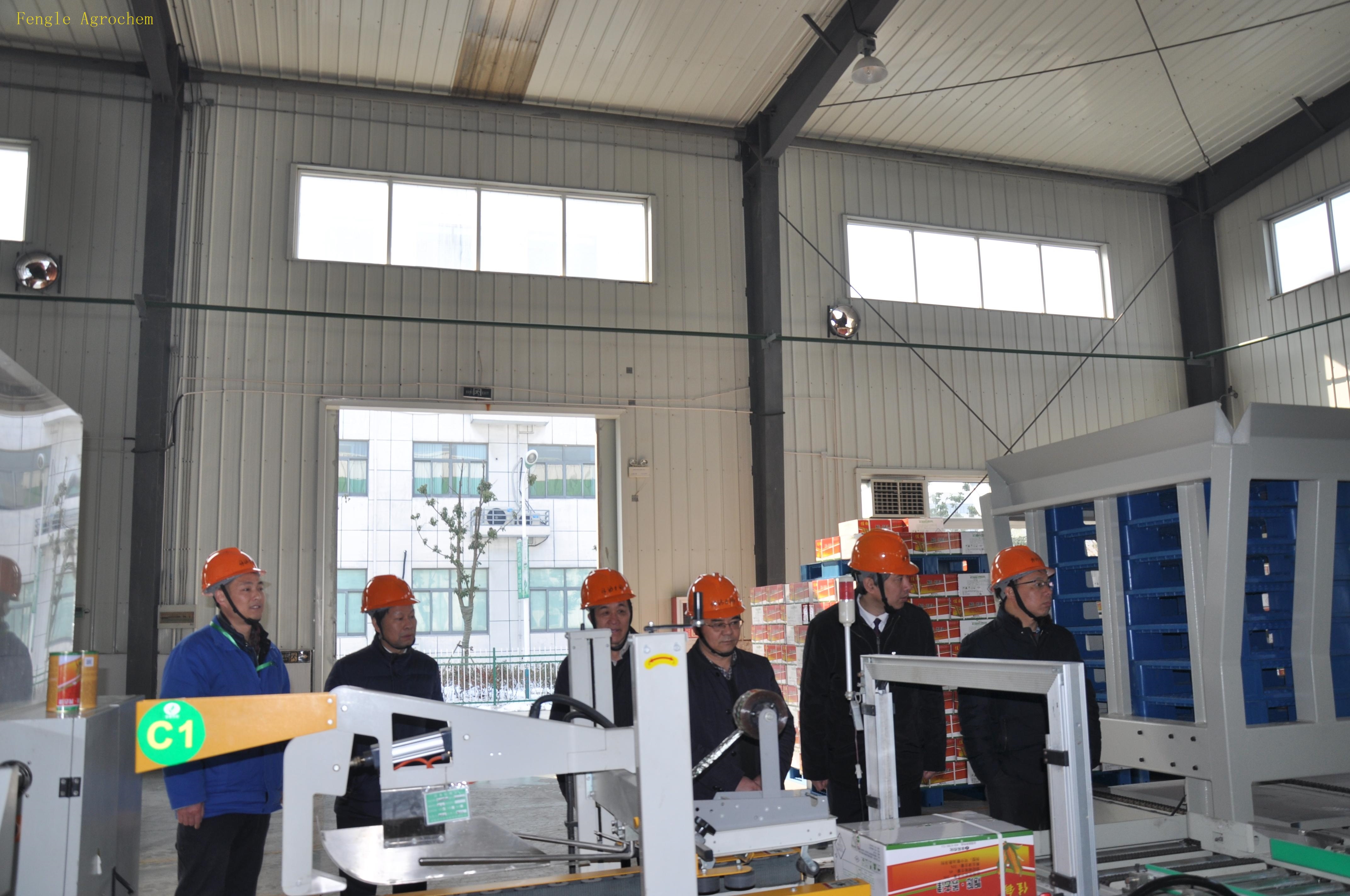 2月6日上午,国家农业部药检所严端祥副所长、宋稳成博士,安徽省农委朱永东副主任,安徽省植保总站黄秋云站长、曹明坤所长一行到丰乐农化指导工作,在丰乐农化领导的陪同下,参观了公司展厅、自动化包装车间、合成车间和中控室。