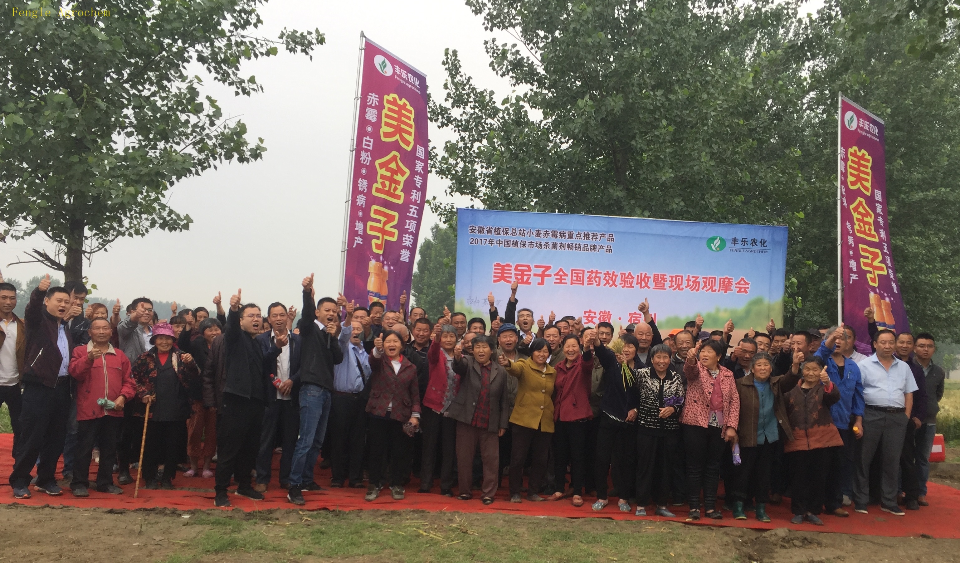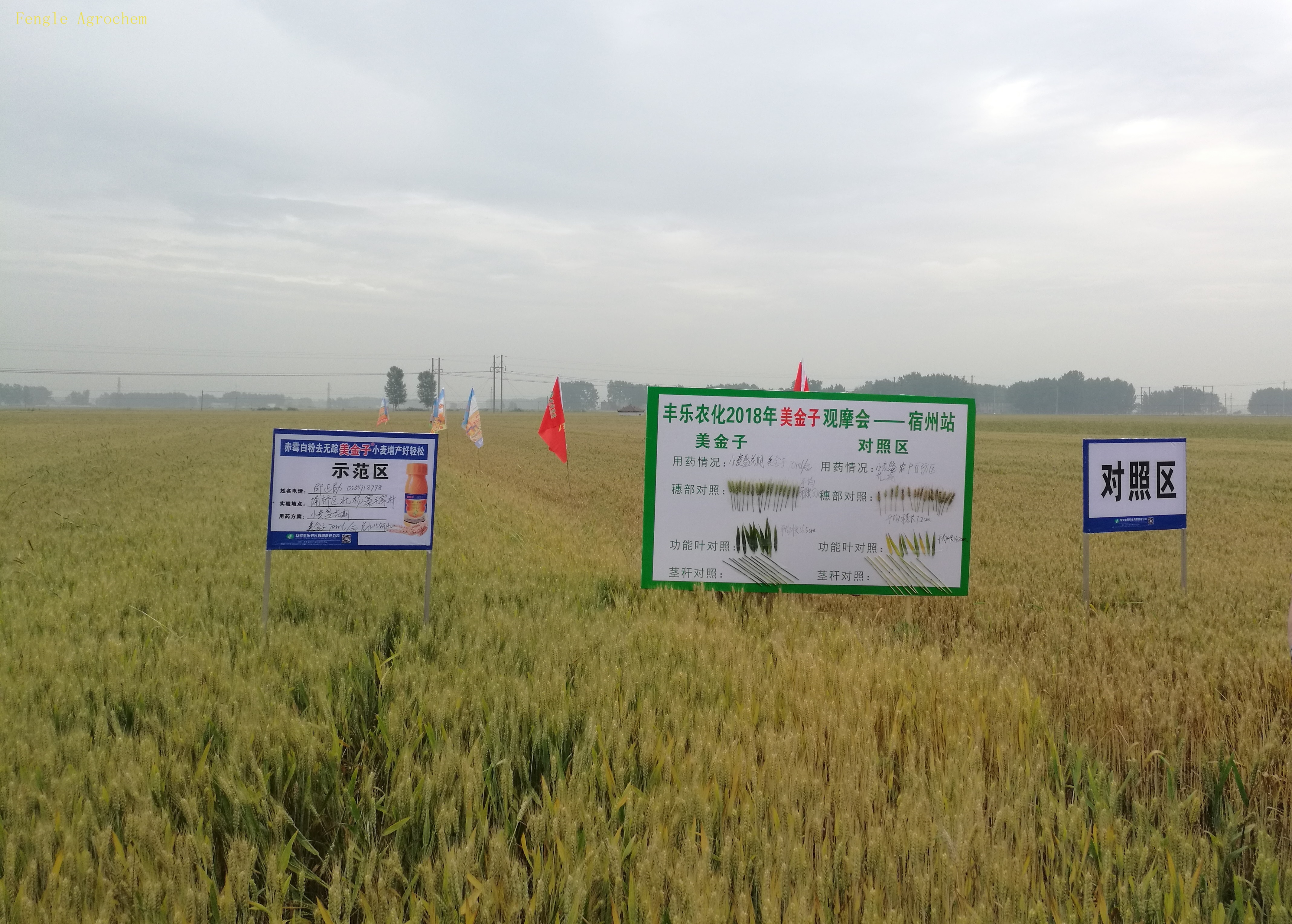 美金子作为丰乐农化专利产品,是具有双向传导功能的杀菌剂,有效防治小麦赤霉病的同时,兼治白粉病、锈病等叶部病害。该产品可以调节小麦叶片合成叶绿素,防止小麦秸秆早衰,促进小麦灌浆营养供给。丙环唑跟福美双复配后相互增效,降低单一药剂对小麦赤霉病防治抗性。