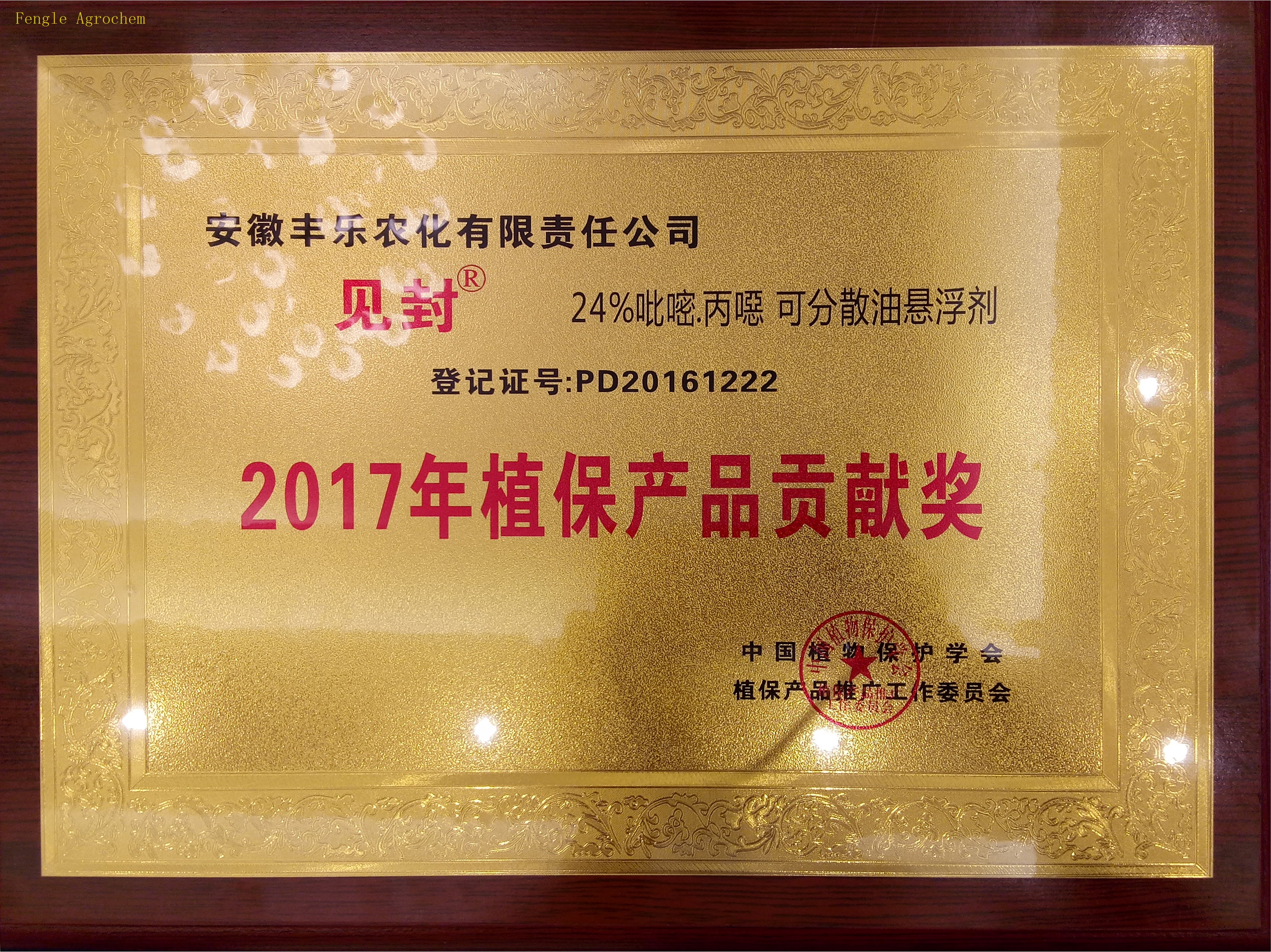 8月4日,被誉为植保行业年度“奥斯卡”庆典之称的“2017年植保产品贡献奖及植保产品推广奖”颁奖活动在广西南宁隆重召开。丰乐农化除草剂“见封”(24%吡嘧丙噁可分散油悬剂)摘得“2017年度植保产品贡献奖”,欧亮亮同志获得 “2017年植保产品推广贡献奖”。
