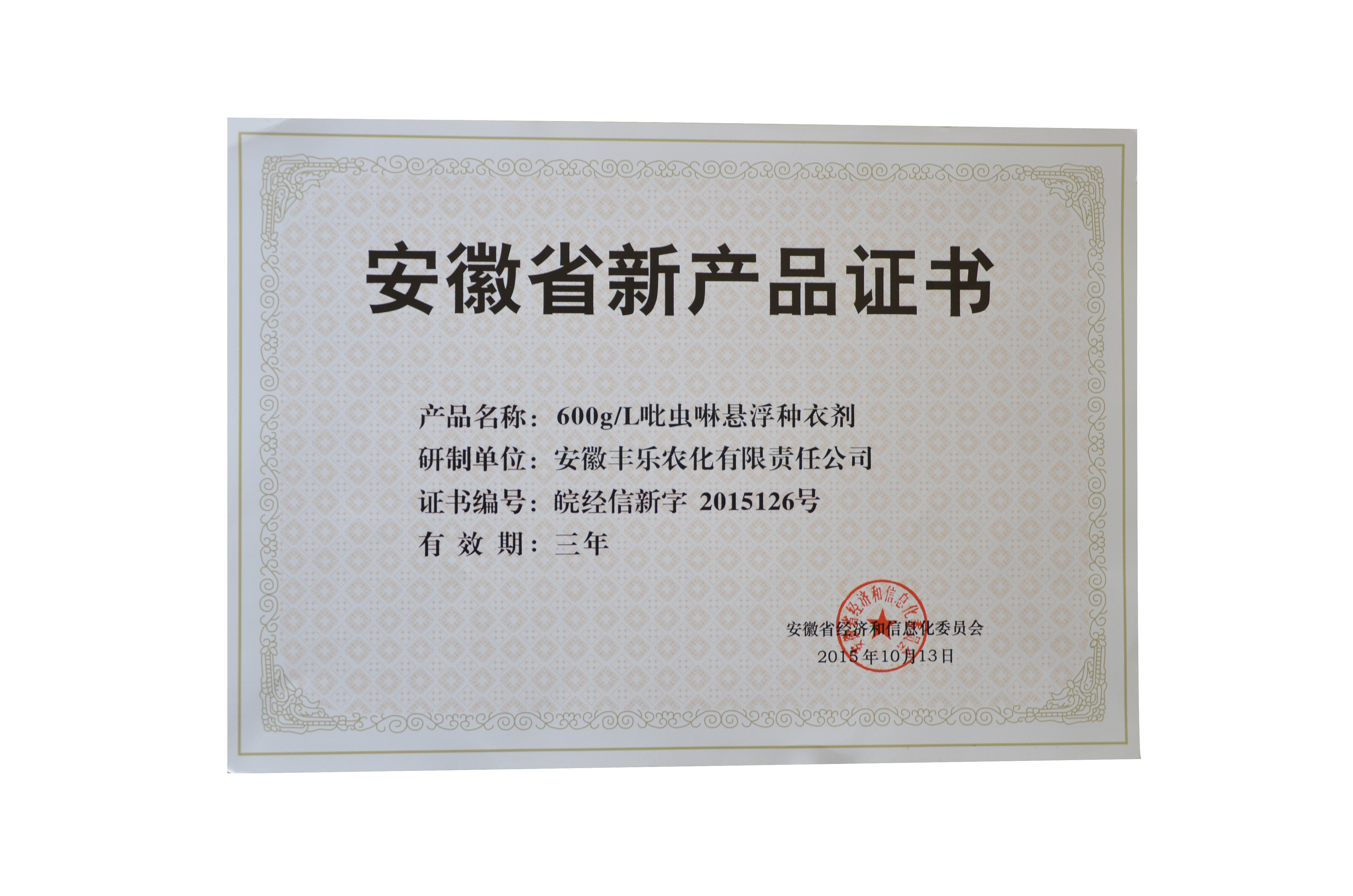 安徽省新产品-600g/L吡虫啉悬浮种衣剂(证书)